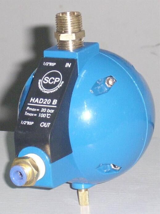 | 水在排水器里累積,達到一定水位之后,浮力大于空氣壓力,空氣瓶上浮,排水口打開,水在氣壓作用下排出,同時浮力減小,空氣瓶下降堵住排水口。