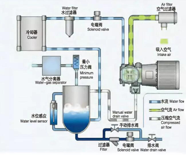 水潤(rùn)滑無(wú)油螺桿機(jī)系統(tǒng)基本都是可自動(dòng)根據(jù)設(shè)置的換水周期實(shí)現(xiàn)不停機(jī)下自動(dòng)換水為客戶(hù)省心。